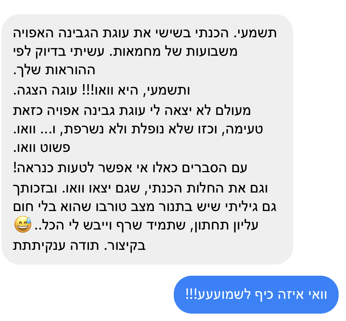עוגות הגבינה שלי תמיד נפלו, הפחזניות שלי נמעכו, וכבר פחדתי לנסות..