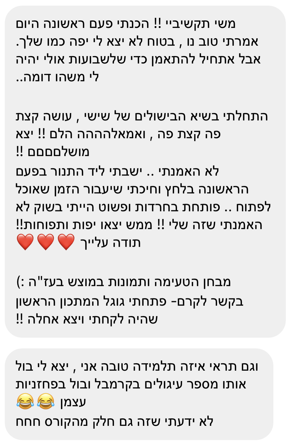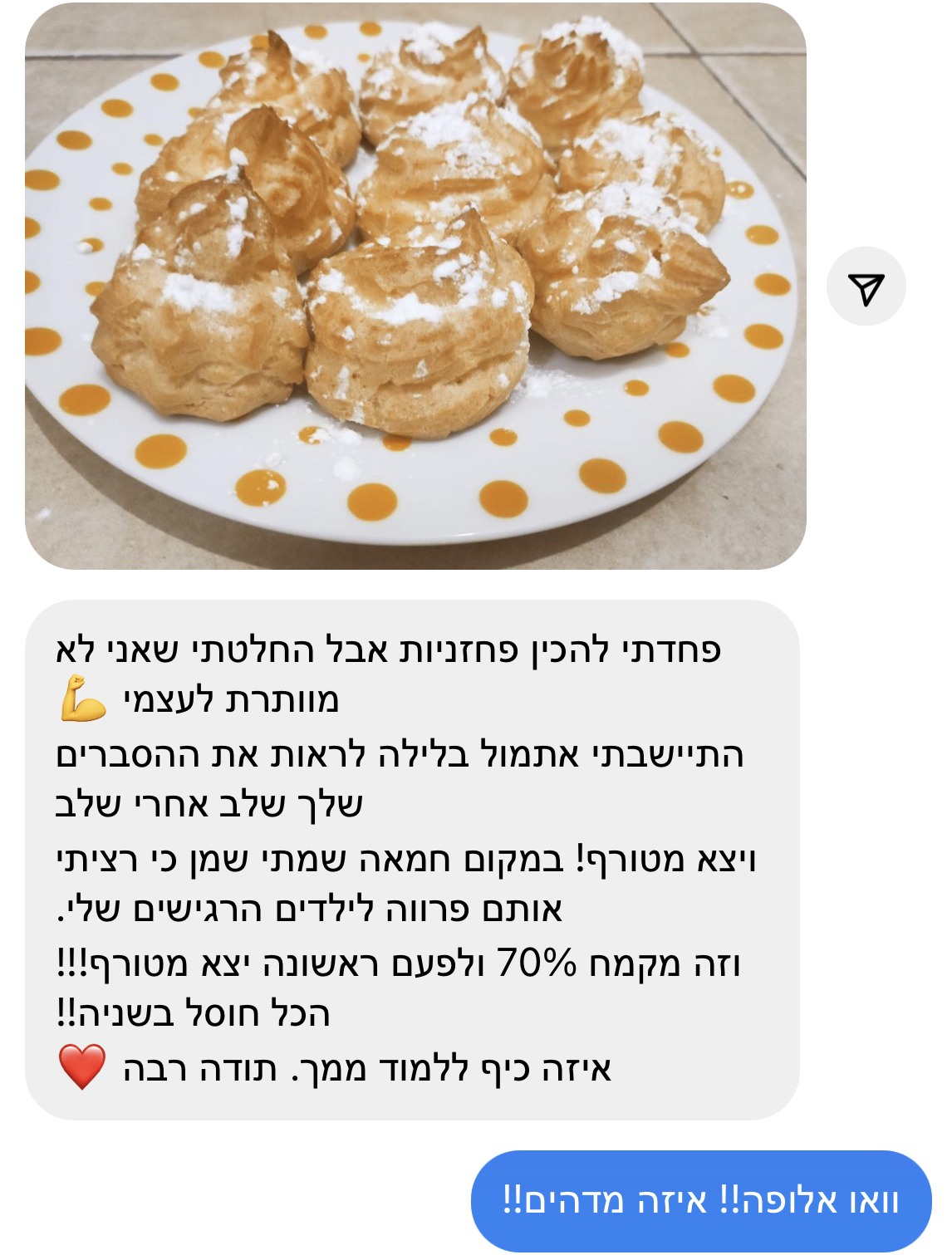 אפילו כאלה שלא אפו מעולם קודם לכן, הבנתי שיש לי יכולת לעזור וללמד את הנושא בצורה מובנת וברורה..